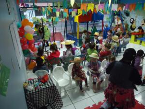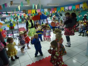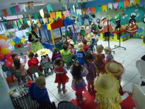 Pipoca, Cri-cri, Pinhão, Bolo, Kreps e muita folia transformaram a Escola da Tia Miti em um lindo Arraial de São João. As turminhas fizeram suas apresentações artísticas como quadrilhas e muita música sanfonada.